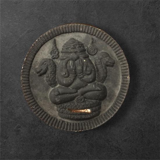 เหรียญพระปิดตาพังพระกาฬ รุ่นเจ้าทรัพย์ เนื้อทองทิพย์หน้ากากอ ัลปาก้า ตอกเลขอารบิค 3474 โค้ดหลักเมือง พิมพ์เล็ก |