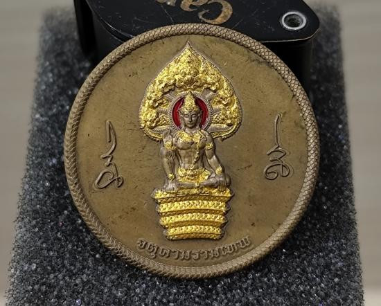 เหรียญจตุคามรามเทพ รุ่นดวงดี159 เนื้อทองระฆังลงยาแดง No.๒ พร้อมกล่องเดิม ขนาดเหรียญ 2.8 cm. |