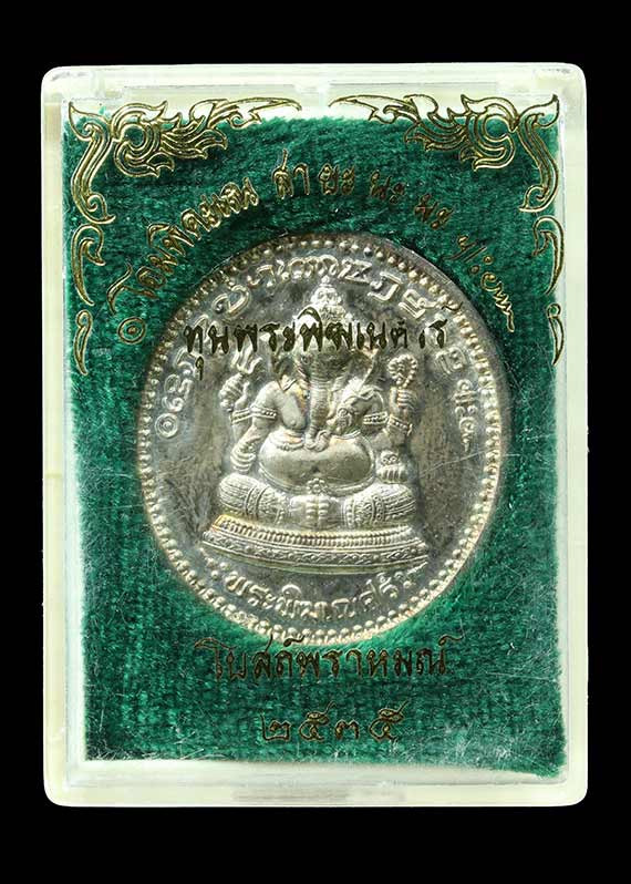 เหรียญเจ้าทรัพย์หลังมังกรคู่ หลวงพ่อเปิ่น วัดบางพระ จ.นครปฐม ปี 35 กล่องเดิม ...เนื้อนวะแก่เงิน...ด้านหน้าตอกโค๊ตชัดเจน...