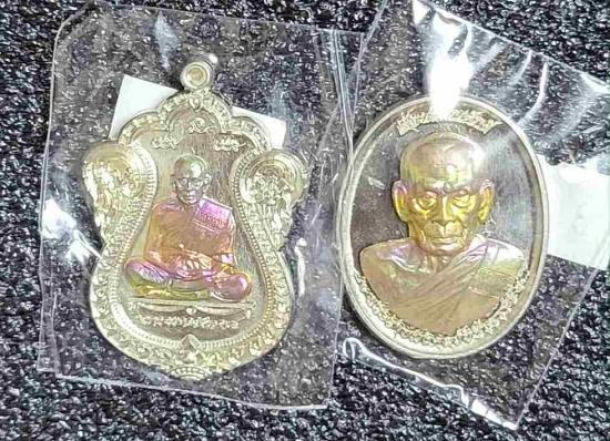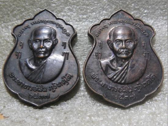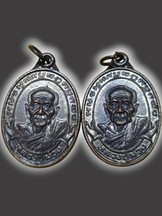 เหรียญคู่ชีวิต เนื้อตะกั่ว หลวงปู่หยุด วัดปรางค์หลวง จ.นนทบุรี ปี 2554