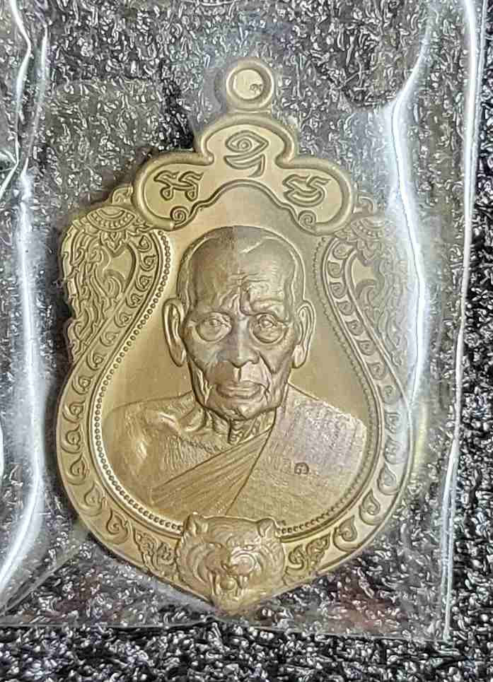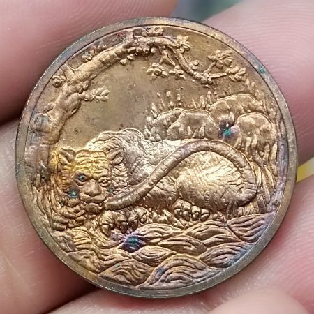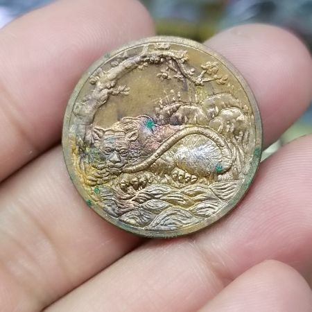 เหรียญ พระอาจารย์ประสูติ วัดในเตา พญาเสือ เฒ่าเสาร์5 พยัคฆ์คาบหาง ปี60 หมายเลข 412 พร้อมกล่องเดิม (คาบเหรียญเกิดจากน้ำมันเสือ)