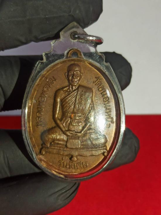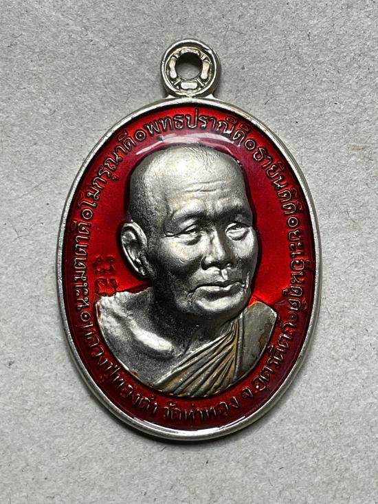 เคาะเดียวแดง เหรียญหลวงพ่อพัฒน์ รุ่นไตรมาส 63 เสมาคาบแก้ว เนื้อพลายเงินลงยาจีวร