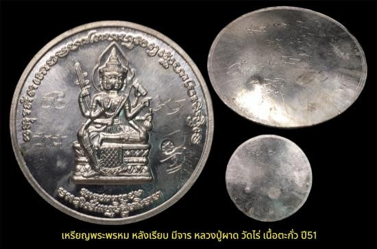 เหรียญพระพรหม หลังเรียบ มีจาร หลวงปู่ผาด วัดไร่ เนื้อตะกั่ว ปี51 เคาะเดียว