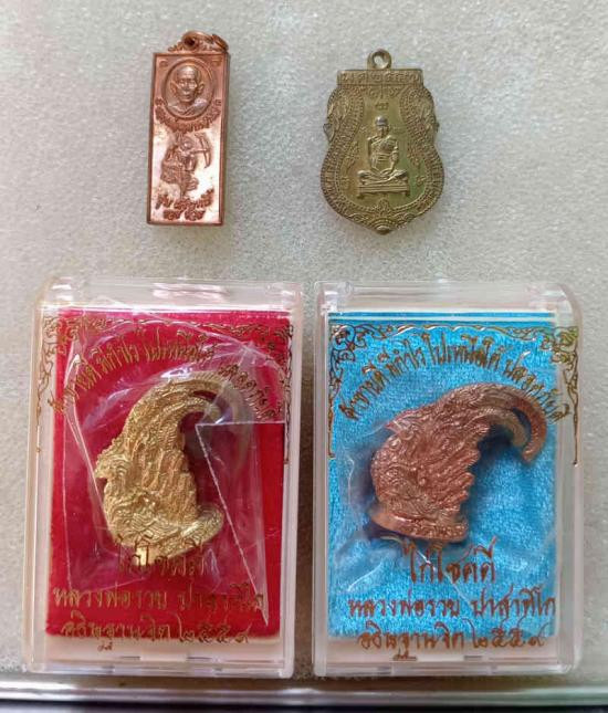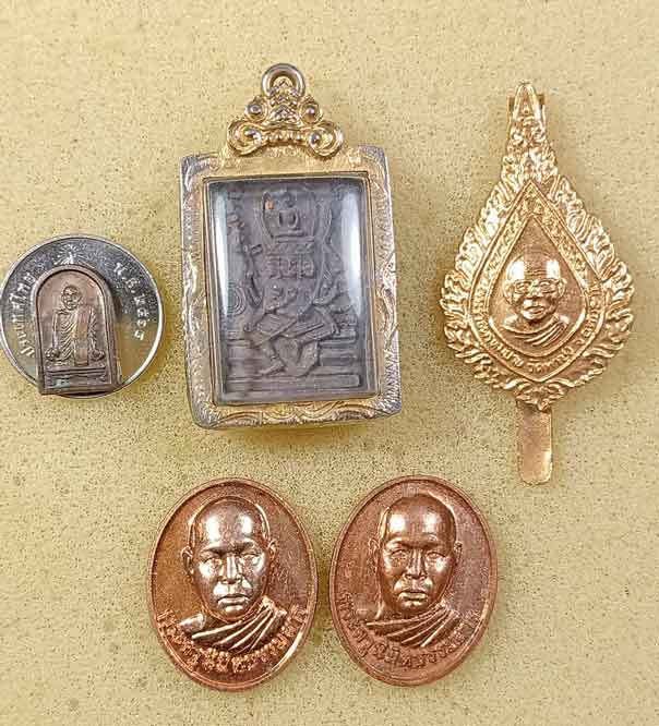 ปรกใบมะขามลพ.แอ๋ว วัดหัวเมืองอุทัยธานี ปี38 +พระเหนือพรหม รุ่นพรหมเศรษฐีบันดาลทรัพย์ เนื้อมหาชนวนโบราณ วัดหนองไผ่อุทัยธานีปี61 +แหนบลพ.ฤาษีลิงดำ+พระครูนิมิตธรรมสารวัดเก้าเสี้ยว นครสวรรค์ 2 เหรียญ