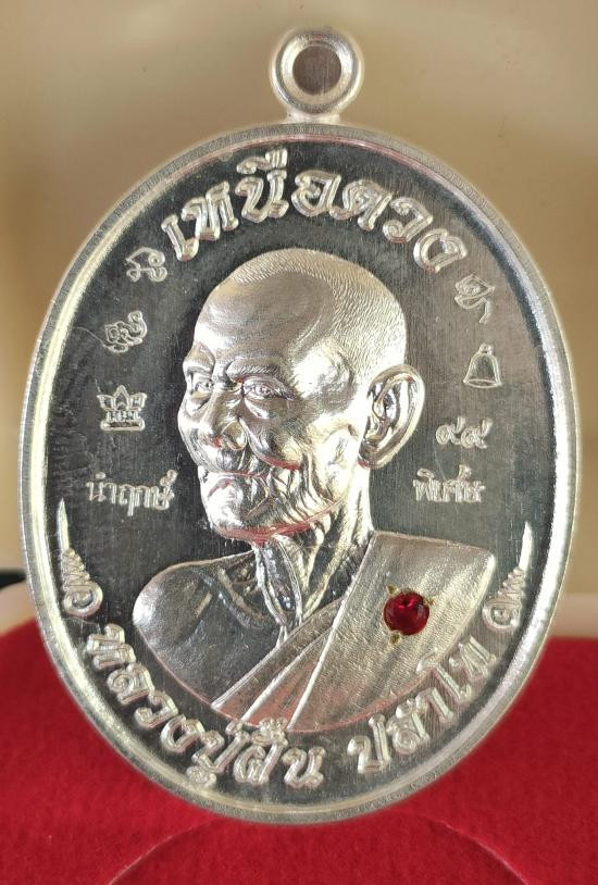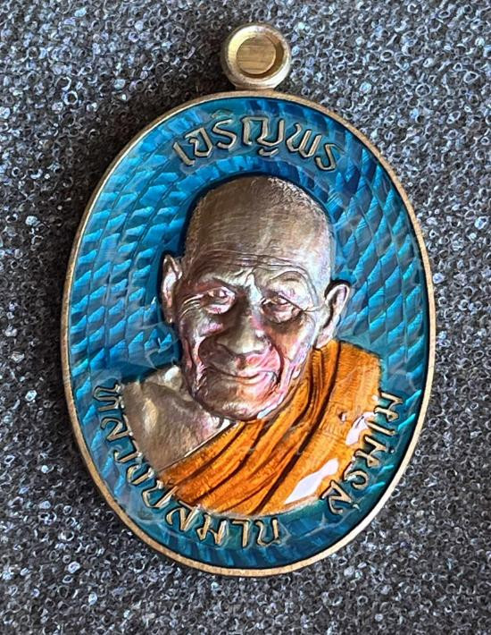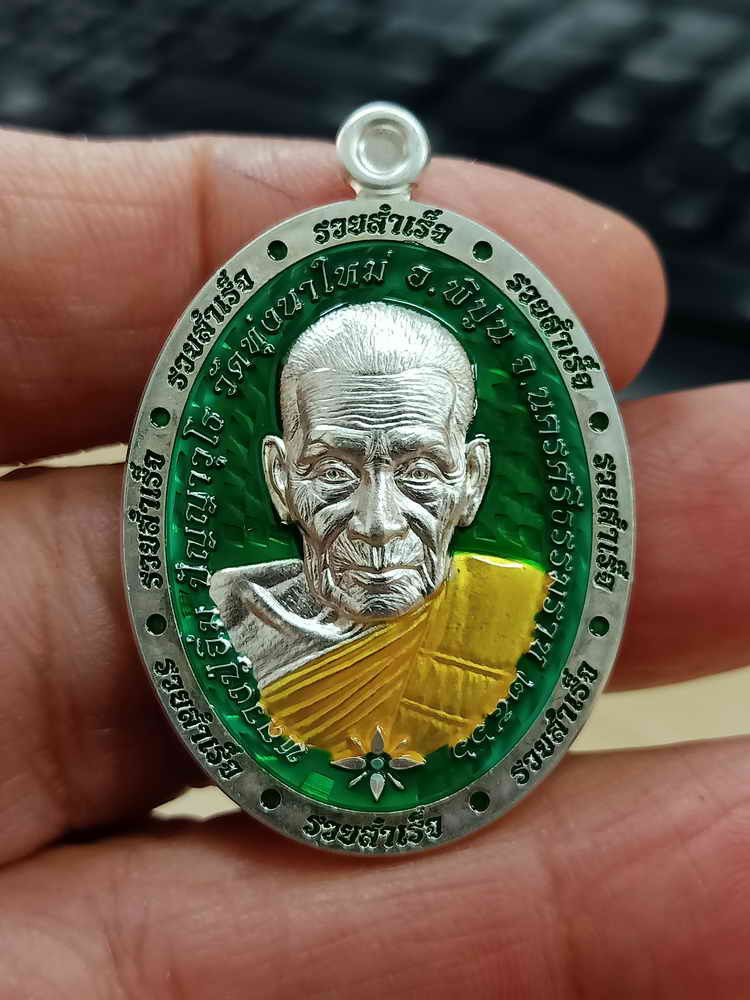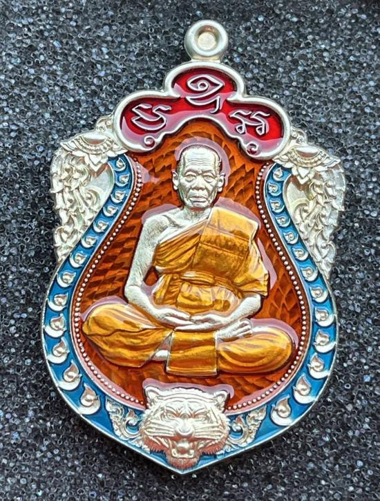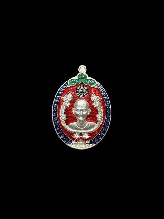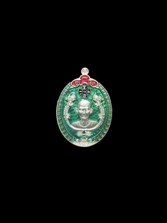 วัดใจ 100 เหรียญรวยสำเร็จ หลวงปู่อิ่ม วัดทุ่งนาใหม่ จ.นครศรีธรรมราช 2566 กะไหล่เงิน ลงยาพื้น ขอบ จีวร หมายเลข 38 กล่องเดิม