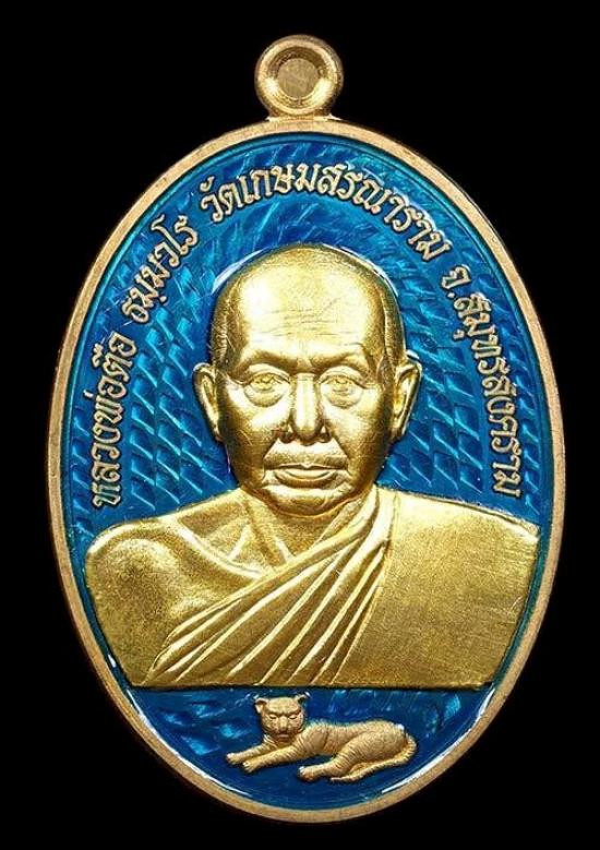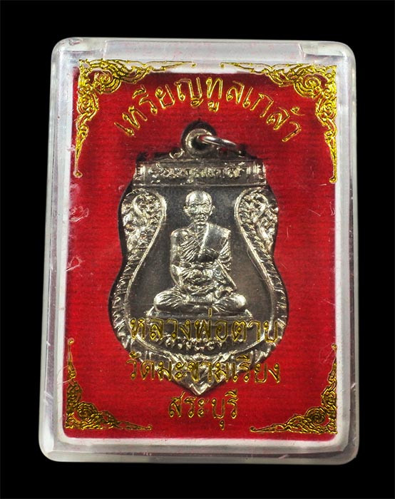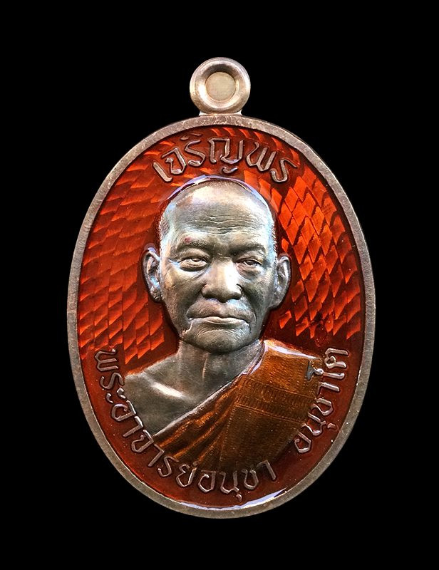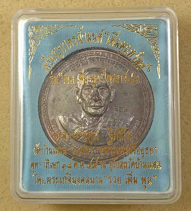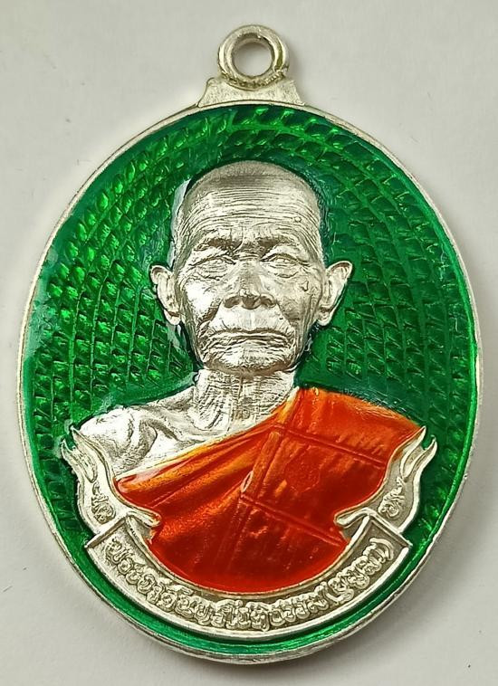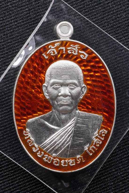 เหรียญหลวงพ่อหยอด วัดแก้วเจริญ รุ่นทรัพย์ล้นเหลือ เนื้อเงินลงยา ปี 2534 จ.สมุทรสงคราม สภาพสวย มาพร้อมกล่องเดิมครับ