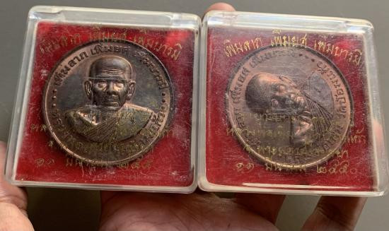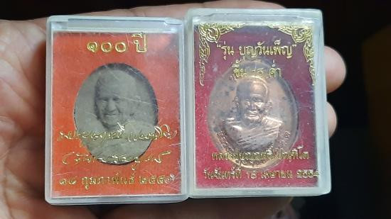 วัดใจเคาะเดียว.......100.......เหรียญมีห่วง นั่งวัว หลวงปู่ทิม วัดพระขาว จ.อยุธยา อายุ 88 ปี งานฝังลูกนิมิต ปี 2544 สวย รวม 2 เหรียญ -- 2