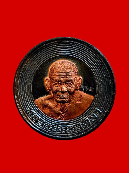 เหรียญย้อนยุคหลวงพ่อทองศุข อินทโชโต ออกวัดเพรียง เพชรบุรี ปี 69 เนื้อทองแดงรมดำ เลข 1399 พร้อมกล่อง