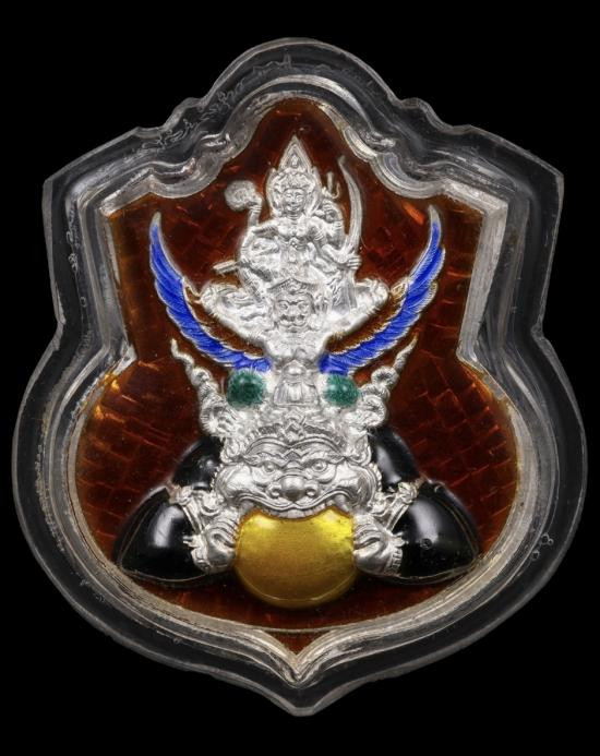 หลวงปู่แผ้ว วัดรางหมัน รุ่นเหนือดวงมหาบารมี เนื้อเงินลงยาราชาวดี ฉลุ กรรมการ No.66 ยาเต็ม จมูกโด่ง