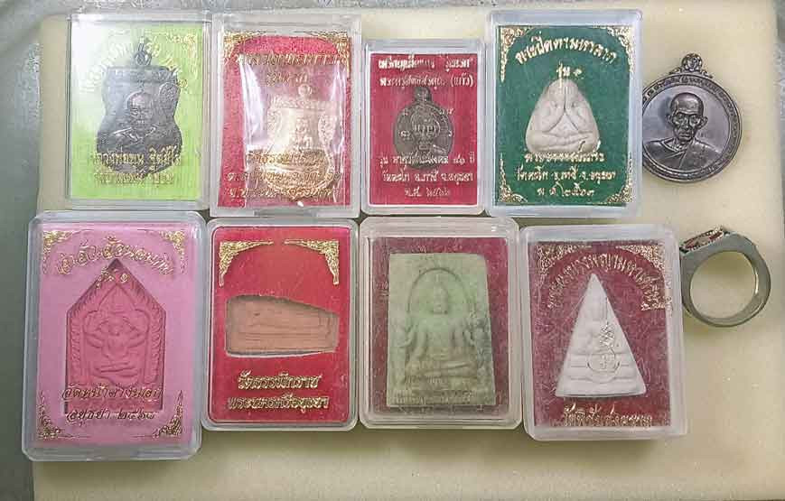 เนื้ออัลปาก้า ลงยาน้ำงเินเขียวเหลือง1+ทองทิพย์ ลงยาลายเสื0 ลงยา 2 รวยพญาไก่ หลวงพ่อพัฒน์ วัดห้วยด้วน |