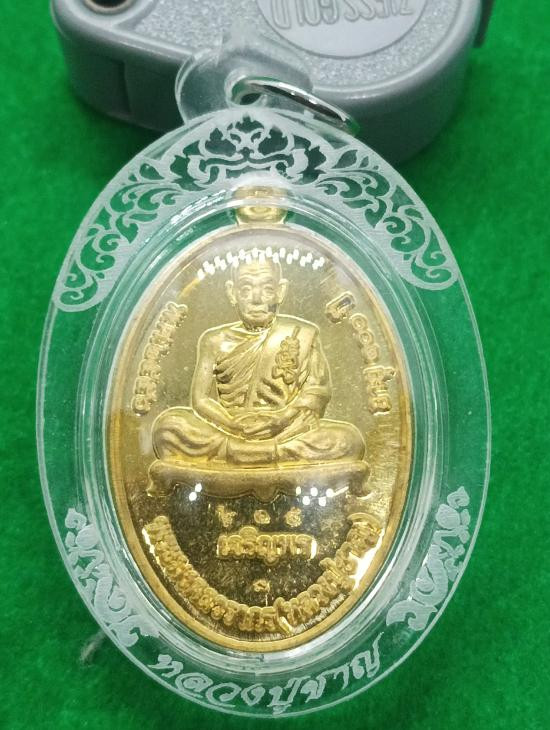 วัดใจครับ เหรียญอายุวัฒนมงคล หลวงปู่ฝั้น ปสาโท วัดหน้าผา เนื้อนวะชุบทองคำแท้ ฝั่งเพชรเต็มเหรียญ เลี่ยมกรอบ เลข 9999 ตอก กรรมการ |