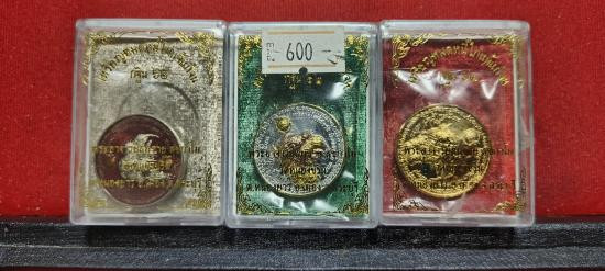 เลื่อนสมณศักดิ์ หลวงพ่อพัฒน์ คละเนื้อ 4เหรียญ พร้อมกล่อง |