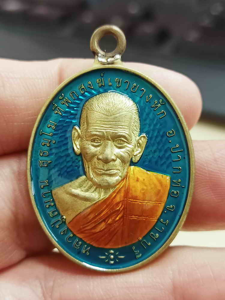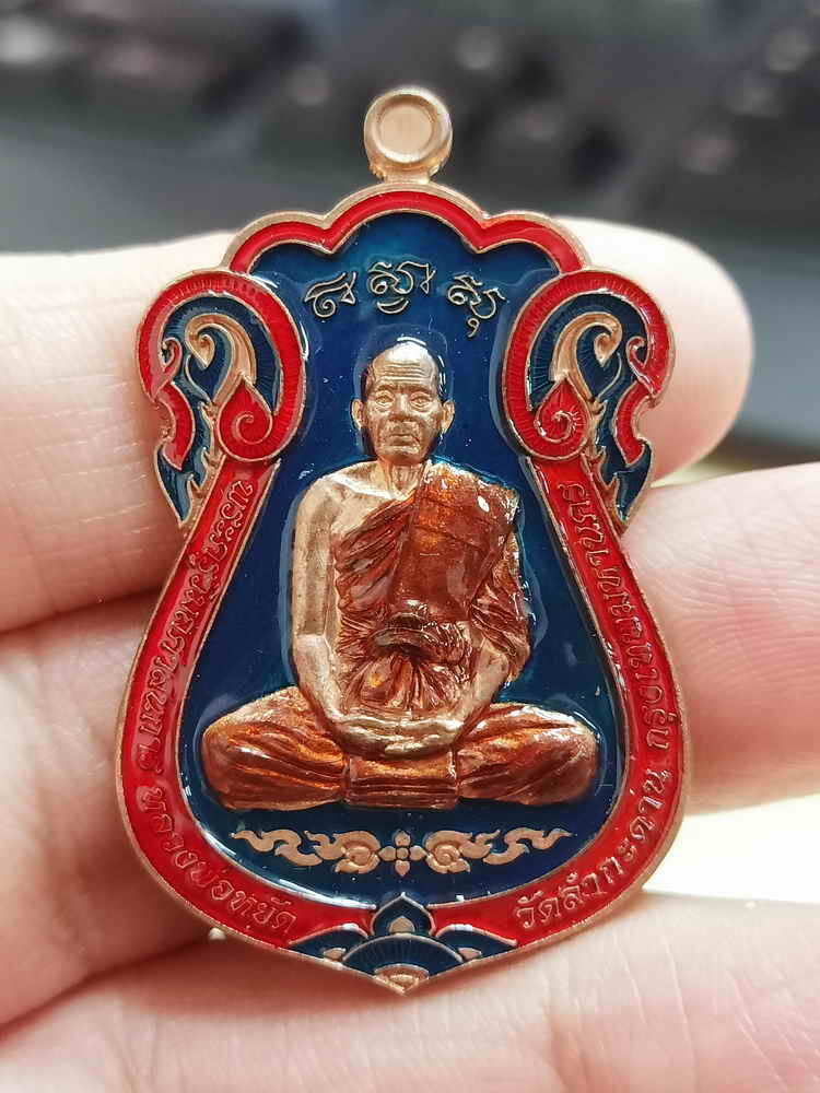 หลวงพ่อรวย วัดตะโก เหรียญเสมา รุ่น ไตรมาส59 เนื้อทองแดงลงยา ปี2559