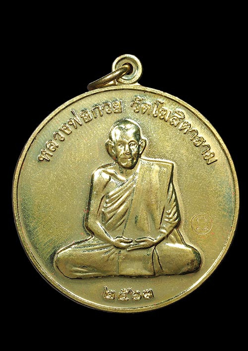 เหรียญรูปเหมือน รุ่นเมตตาศิษย์ เนื้อทองเหลือง หลวงพ่อกวย วัดโฆสิตาราม จ.ชัยนาท จัดสร้างปี 2563 ขนาดกว้าง 3.5 ซ.ม.ตอกโค๊ะ "นะ" สวยมาก มีกล่องเดิมๆครับ