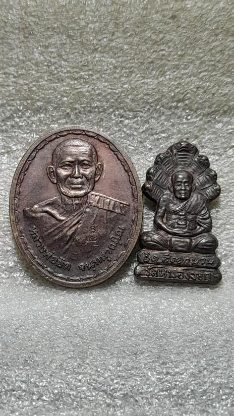 วัดใจเคาะเดียว......100......เหรียญหลวงพ่อยิด รุ่นกองกษาปณ์ วักหนองจอก จ.ประจวบคีรีขันธ์ ปี 2534 ตอกโค๊ต +เหรียญนาคปรกหลวงพ่อยิด วัดหนองจอก รุ่นสีดอกบวบ ปี2537 รวม 2 เหรียญ