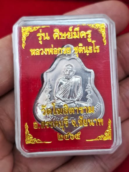 เหรียญพระปิดตาบาตรน้ำมนต์ หลวงปู่เกลี้ยง เชตธัมโม วัดโนนแกด จ.ศรีสะเกษ พ.ศ.2549 เนื้อเงินลงยาราชาวดี สีแดง ตอกโค๊ต ตอกเลข สร้าง 108 เหรียญ สภาพสวยพร้อมกล่อง !!