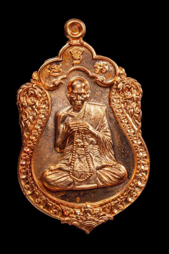 เหรียญ มหาลาภ หลวงพ่อเพี้ยน วัดเกริ่นกฐิน จ.ลพบุรี ปี2555 เลี่ยมพร้อมกล้อง เนื้อทองแดง |