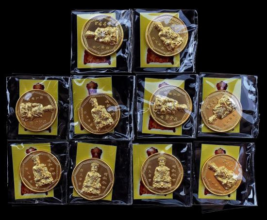 หลวงพ่อรวย วัดตะโก จ.อยูธยา เหรียญ 8 ทิศ ปี 2543 เนื้อนวะหน้ากากทองคำ เลข 3 หายากๆ เลี่ยมสวยๆ |