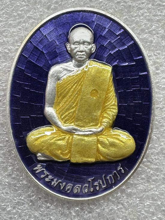 เหรียญเนื้อเงินลงยาสีเม่วง พระมงคลวโรปการ ( หลวงพ่อชำนาญ วัดชินวราราม ) สร้างเพื่อให้ทุนการศึกษาเด็กนักเรียนโรงเรียนปทุมธานี (นันทมุนีบำรุง) หมายเลข 39
