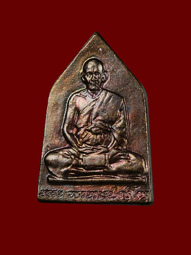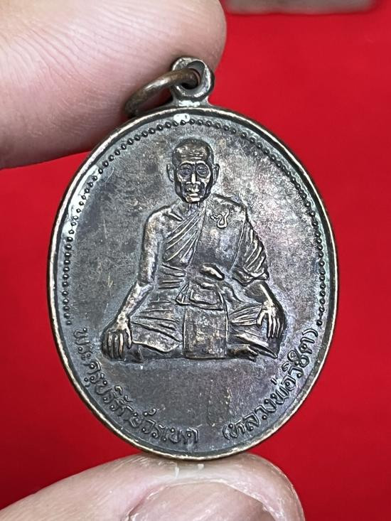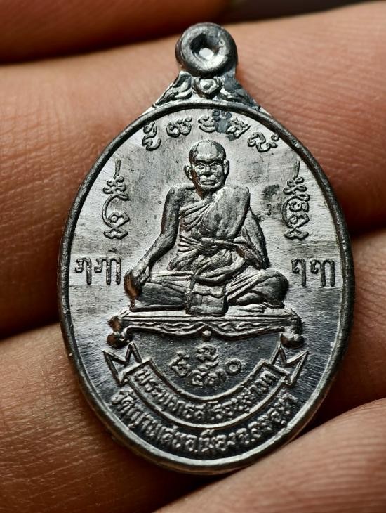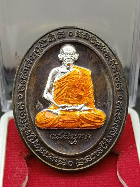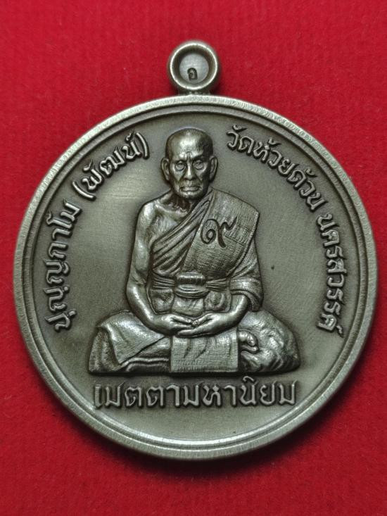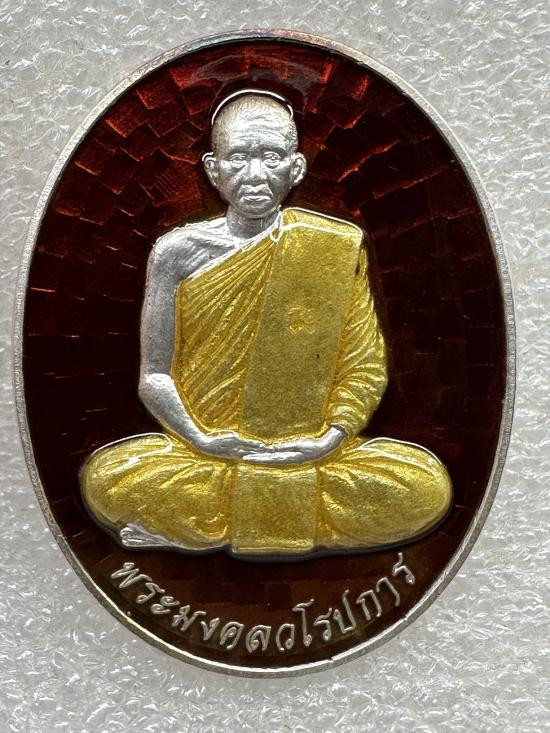 เหรียญเนื้อเงินลงยาสีแดง พระมงคลวโรปการ ( หลวงพ่อชำนาญ วัดชินวราราม ) สร้างเพื่อให้ทุนการศึกษาเด็กนักเรียนโรงเรียนปทุมธานี (นันทมุนีบำรุง) หมายเลข 42