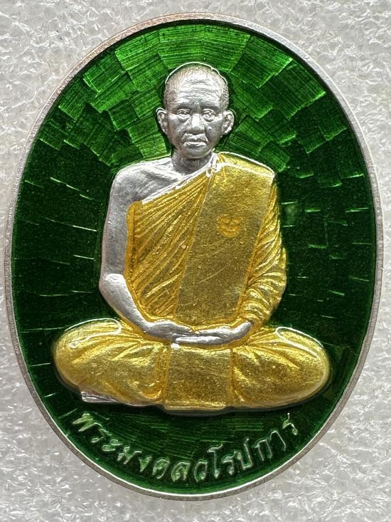 เหรียญเนื้อเงินลงยาเขียว พระมงคลวโรปการ ( หลวงพ่อชำนาญ วัดชินวราราม ) สร้างเพื่อให้ทุนการศึกษาเด็กนักเรียนโรงเรียนปทุมธานี (นันทมุนีบำรุง) หมายเลข 14