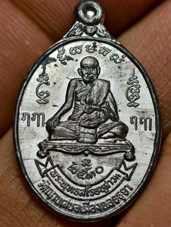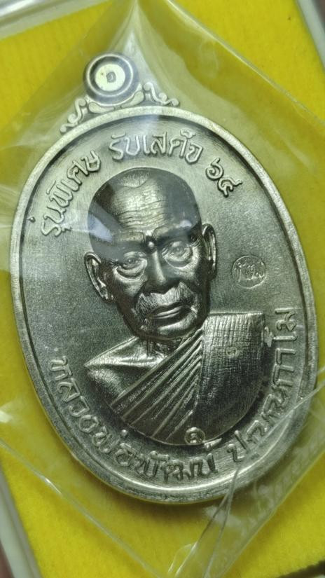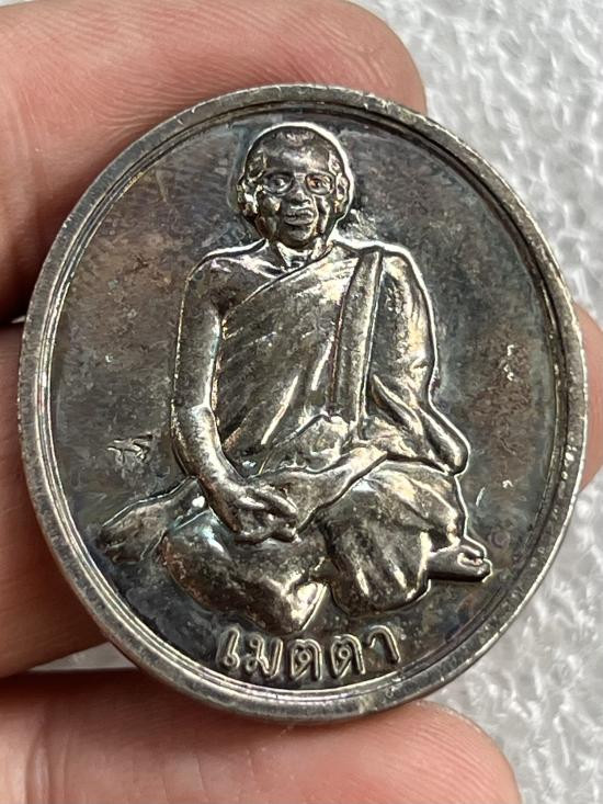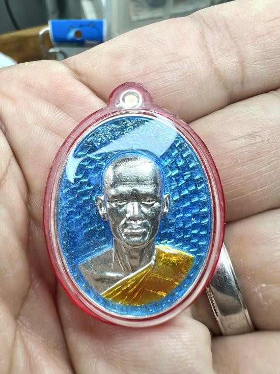 เหรียญ เจริญสุขนะดี พระอาจารย์ นะดี อินทปัญโญ ปี 2559 เนื้อเงินลงยาฟ้า พิเศษจีวรด้านหลัง จัดสร้างเพียง 199 องค์