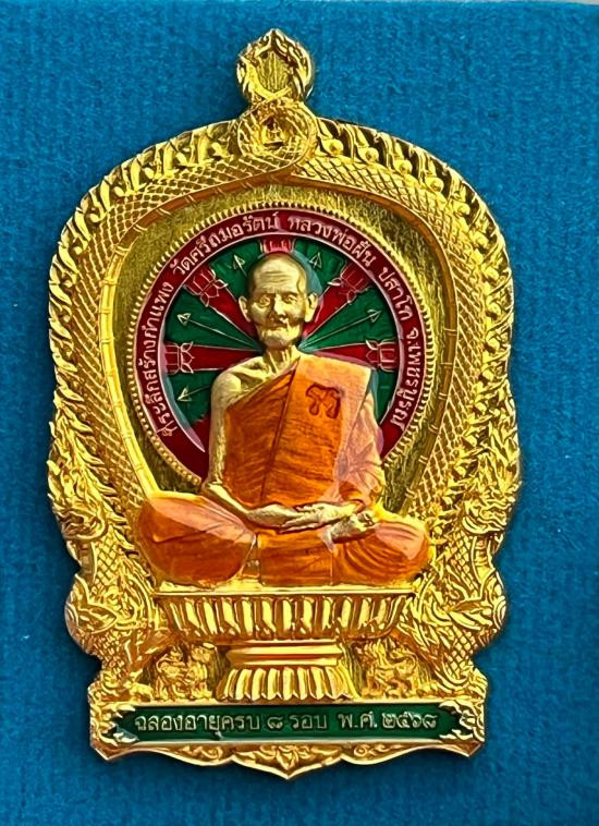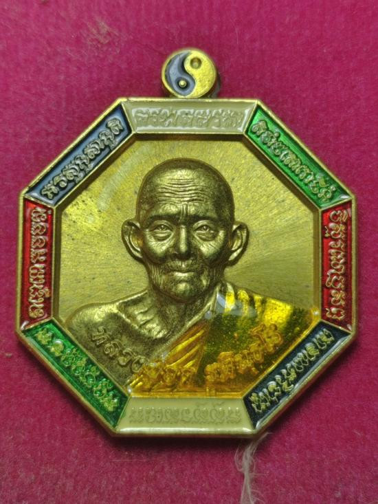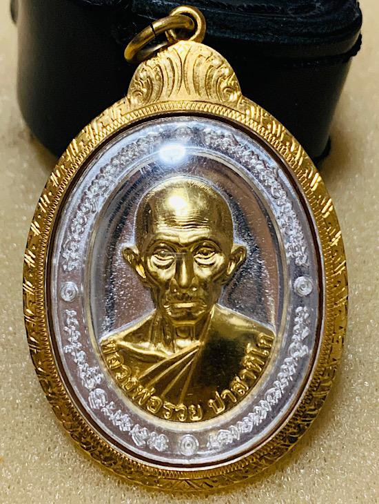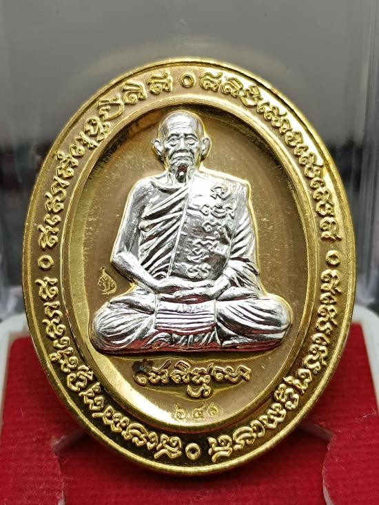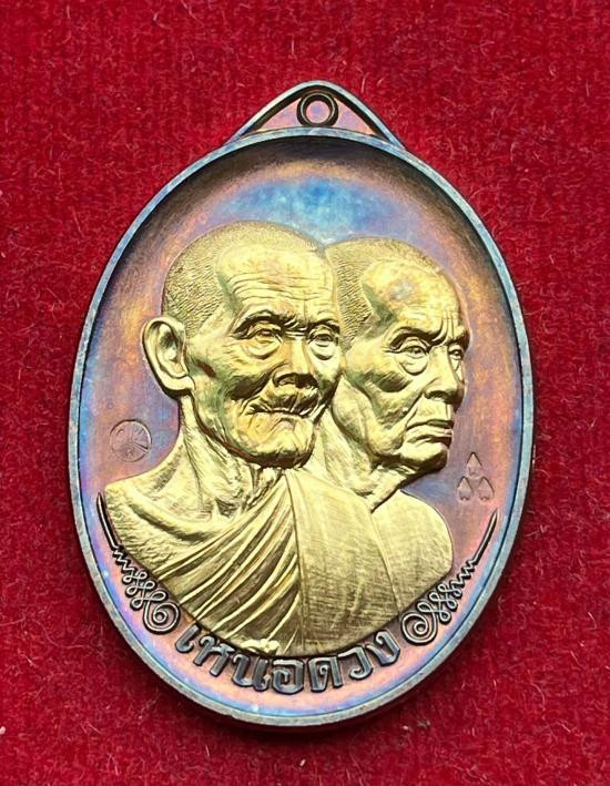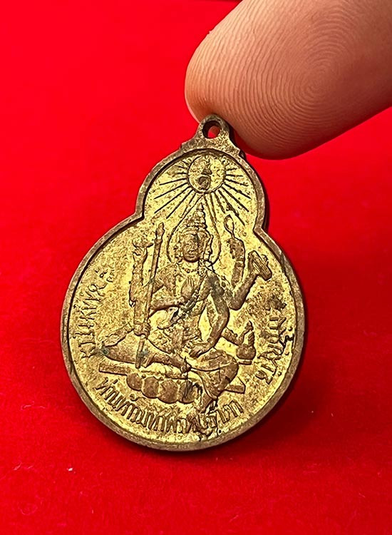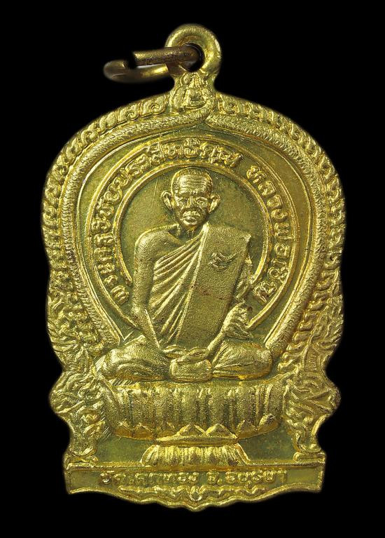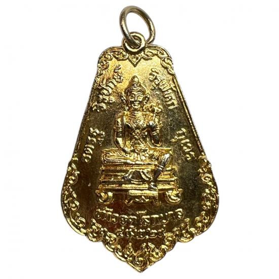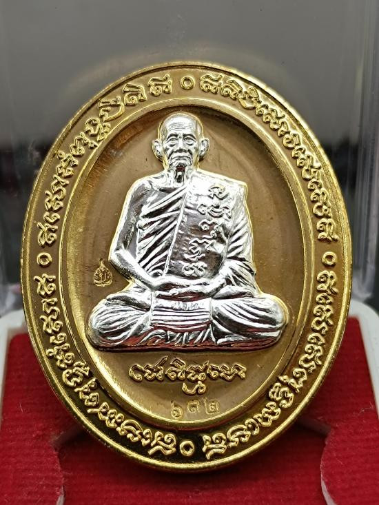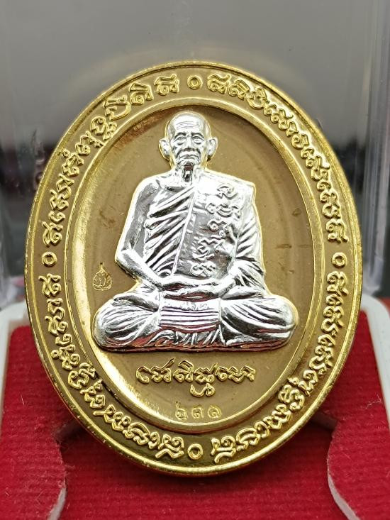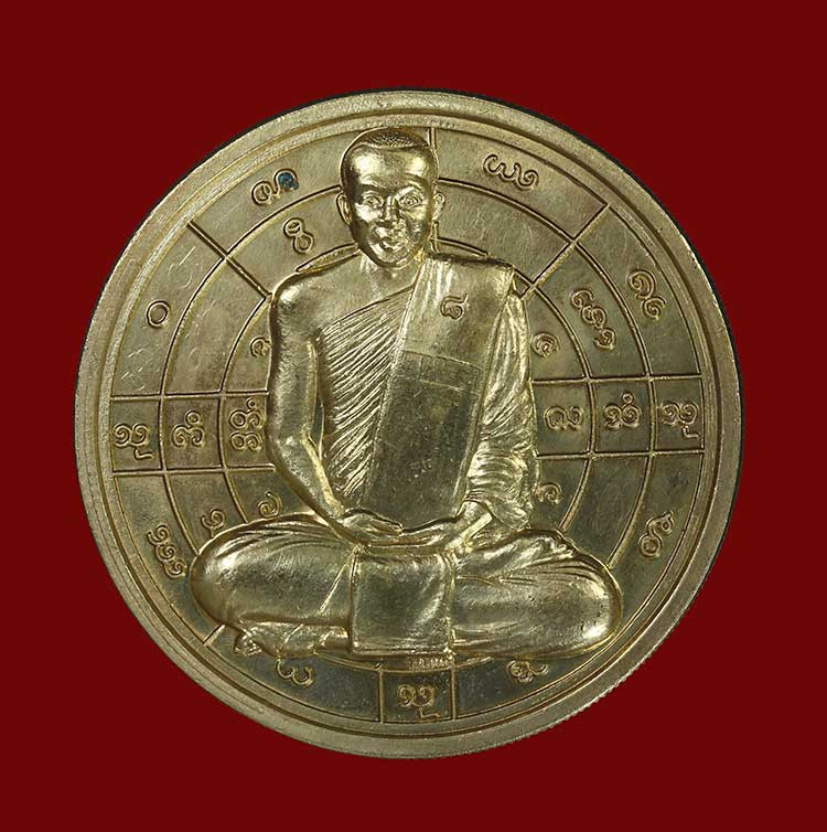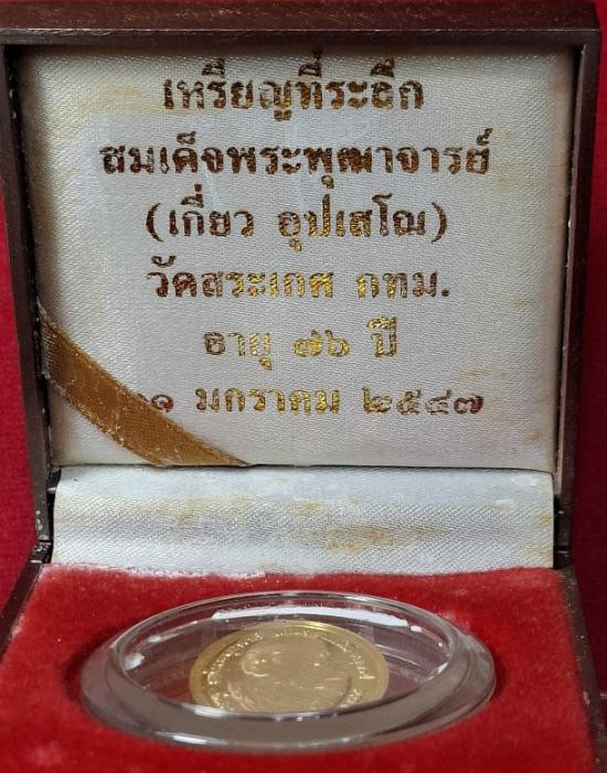 เหรียญนั่งพาน หลวงพ่อเชิญ วัดโคกทอง อยุธยา เนื้อกะไหล่ทอง ปี 2537 พร้อมกล่องเดิม แดง120