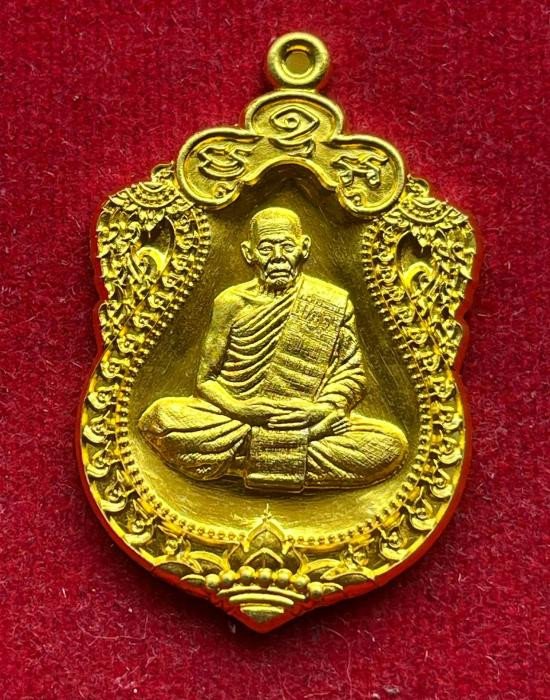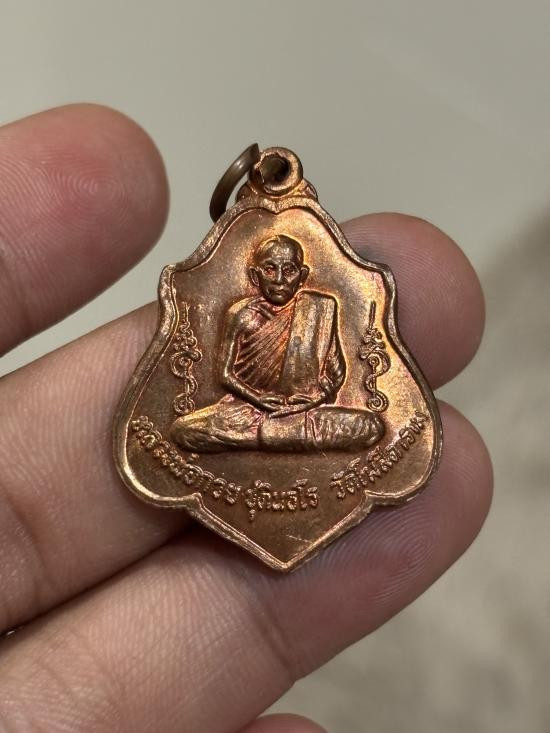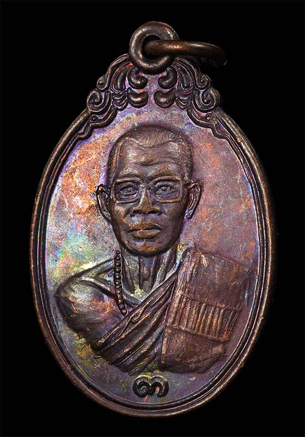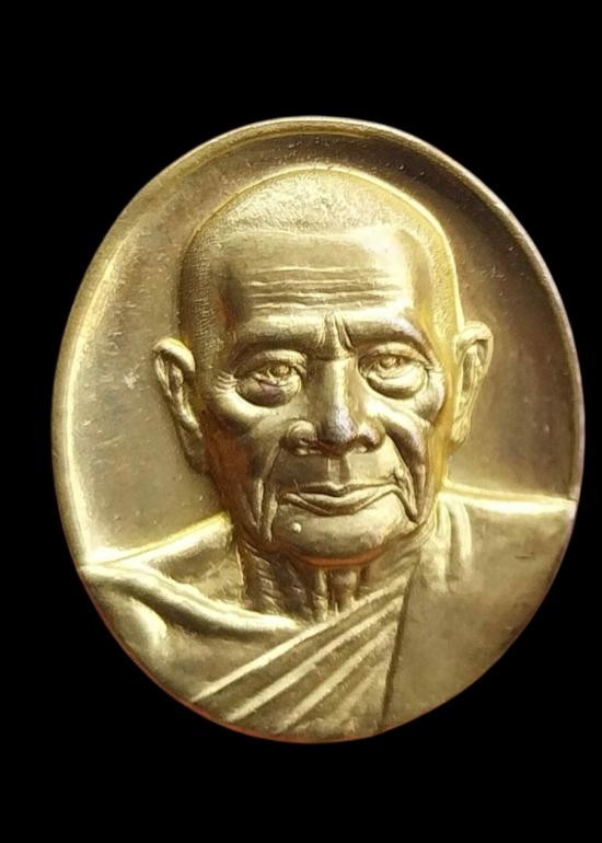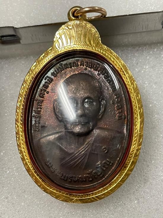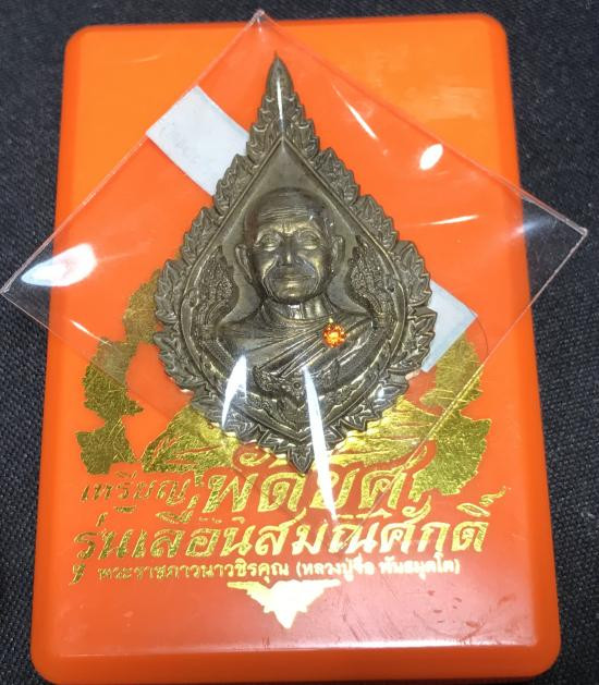 เคาะเดียว.....เหรียญพัดยศ รุ่นเลื่อนสมณศักดิ์ (หลวงปู่จื่อ วัดเขาตาเงาะ จ.ชัยภูมิ) เนื้อชนวนโบราณ ฝังพลอยสีส้ม พิมพ์ครึ่งองค์ กล่องเดิม