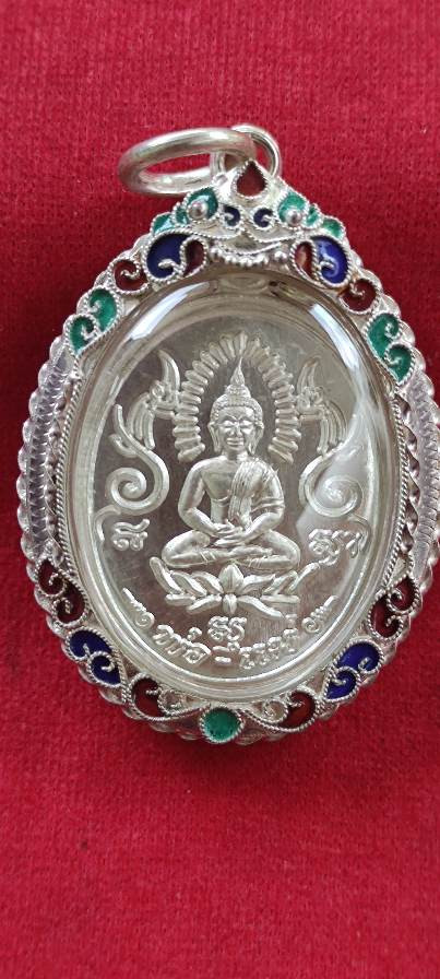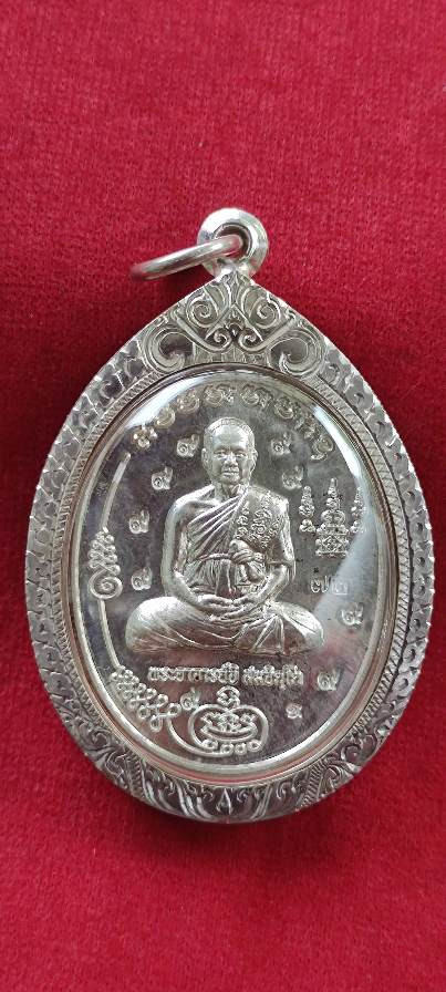 เหรียญพ่อ แม่ พระอาจารย์จิ วัดหนองหว้า เพชรบุรี เนื้อเงิน หมายเลข23 เลี่ยมกรอบเงินลงยา พร้อมกล่องครับ