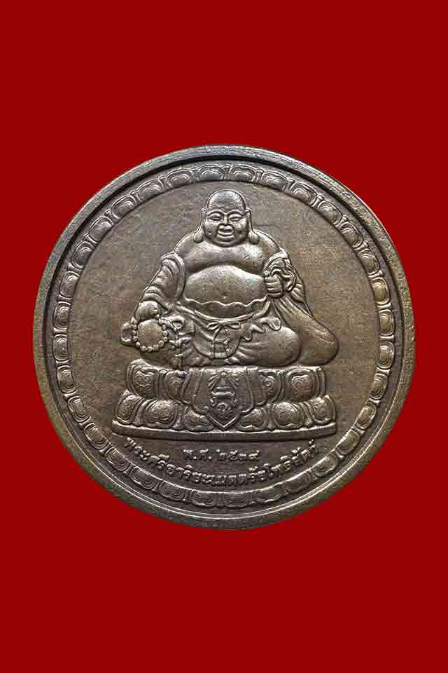 เหรียญพระศรีอารยะเมตตรัยโพธิสัตว์ หลังพระมหาโพธิสัตว์กวนอิม วัดโพธิ์แมนคุณาราม ปี 2539 |
