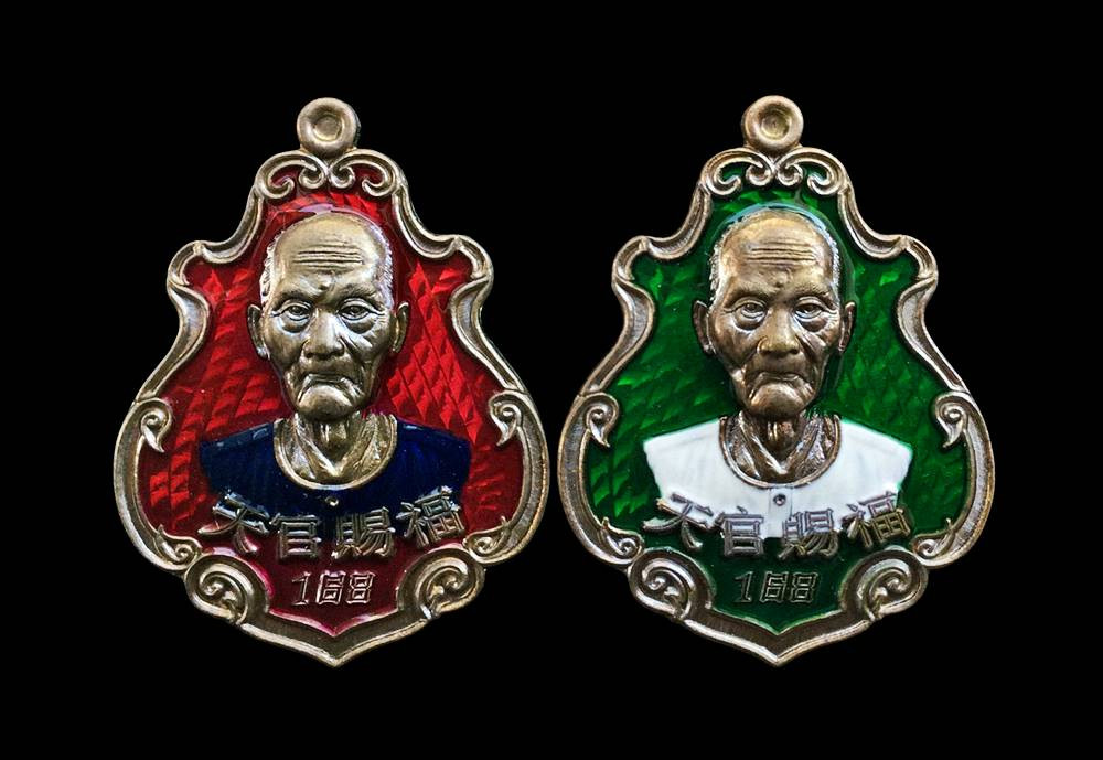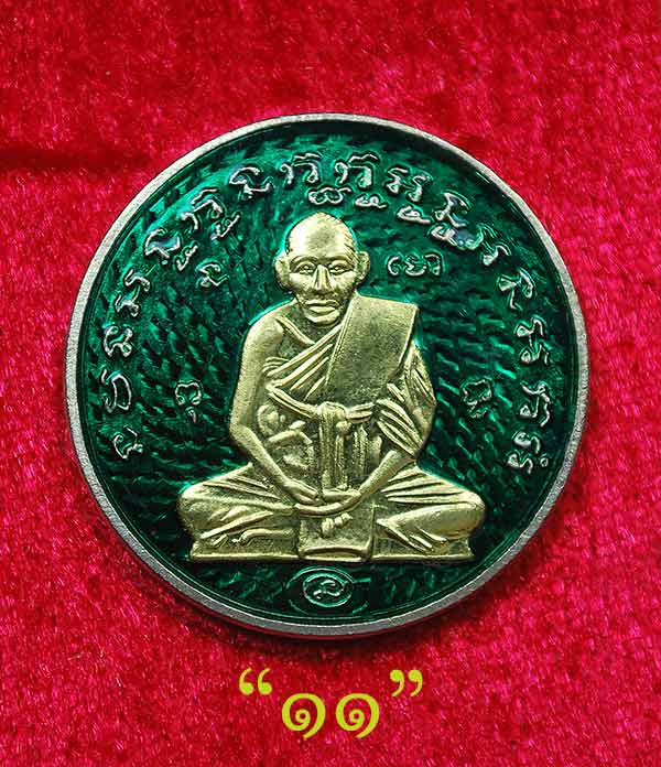 หรียญหลวงพ่อกลั่น วัดพระญาติฯ พิมพ์นิยมตราชั่งนะรี วาระใหญ่ 666 ปีกรุงศรีอยุธยา "เนื้ออัลปาก้าลงยาสีเขียวหน้ากากชนวนพระประธาน No.11 |