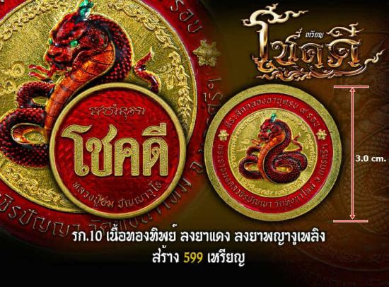 เหรียญโชคดี หลังพญางู วาระ ๙ รอบ หลวงปู่อิ่ม ปญฺญาวุโธ วัดทุ่งนาใหม่ จ.นครศรีธรรมราช (ขนาดเหรียญ 3.0 ซม.) เนื้อทองทิพย์ลงยาแดง ลงยาพญางูเพลิง ซีลเดิม ลุ้นเลขสวย/เลขมงคลครับ (3) |