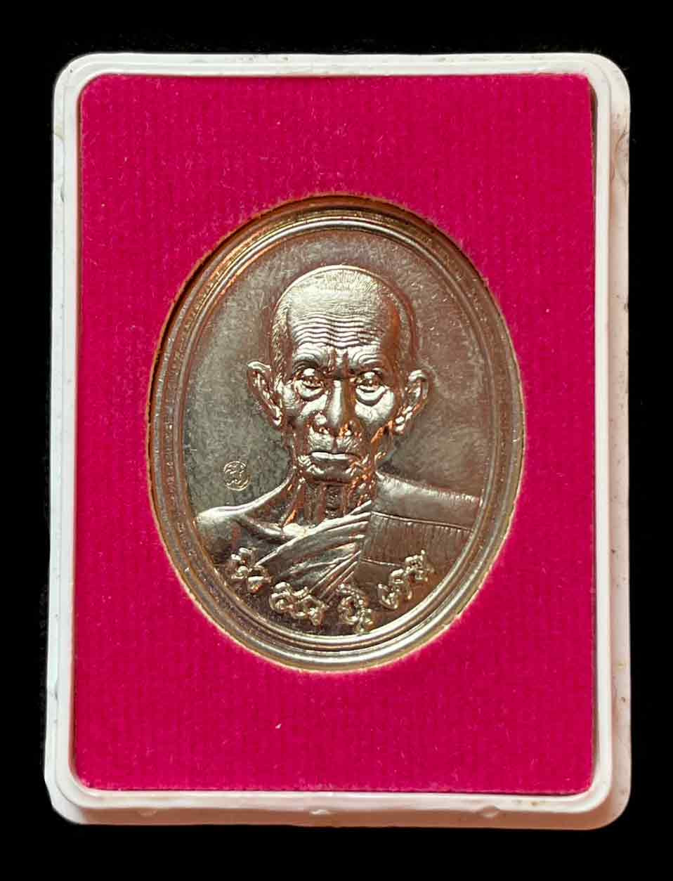หลวงพ่อรวย รุ่นเหรียญเลื่อนสมณศักดิ์ ปี 2559 เนื้ออัลปาก้า เลี่ยม พุก เงาๆ สวยๆ |