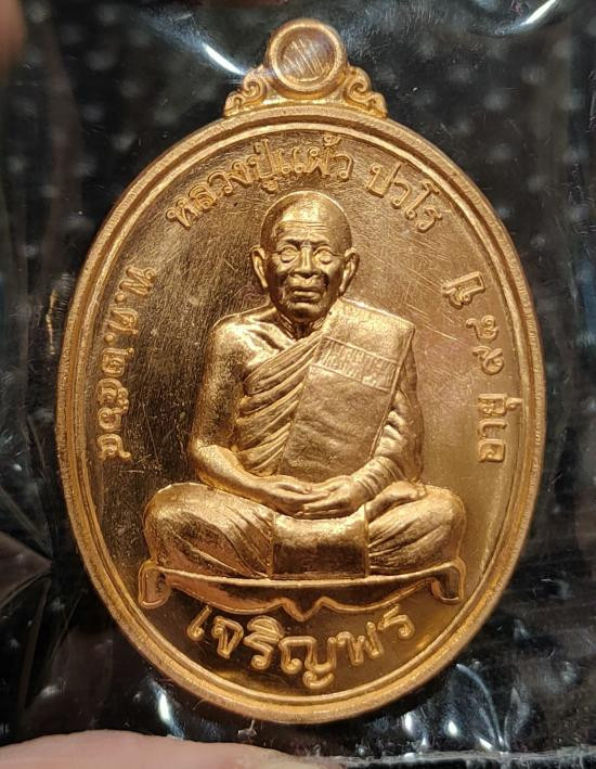 เหรียญเจริญพร หลวงปู่แผ้ว ปวโรวัด รางหมัน อายุ 98 ปี พ.ศ 2564 |