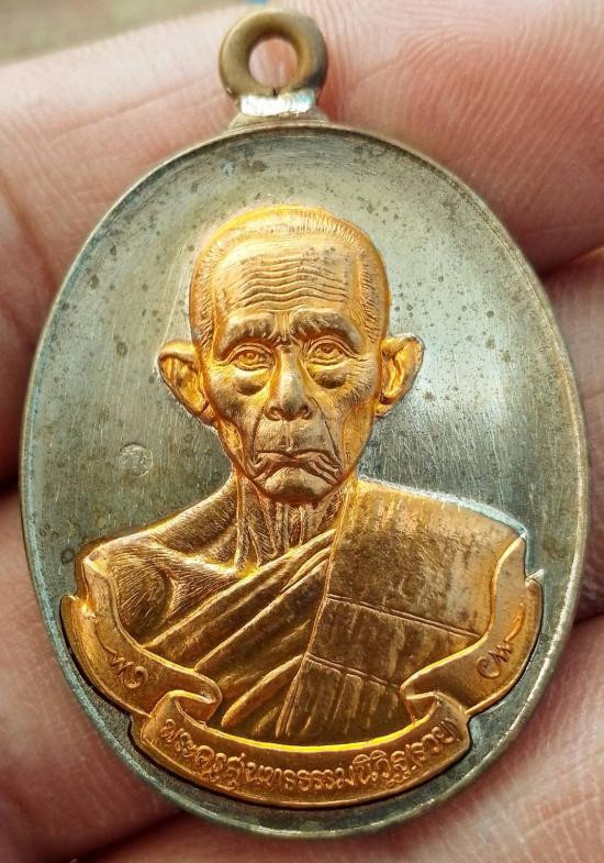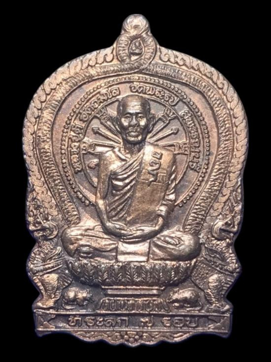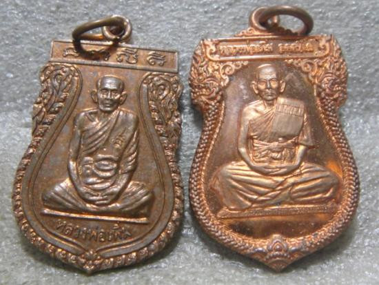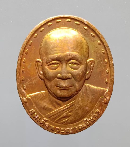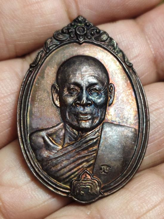 เหรียญปลดหนี้ หลวงปู่แผ้ว ปวโร หน้าหลวงปู่ทวด หลังหลวงปู่แผ้ว วัดรางหมัน ปี 2550 ผิวสวยๆ รุ้งๆ |