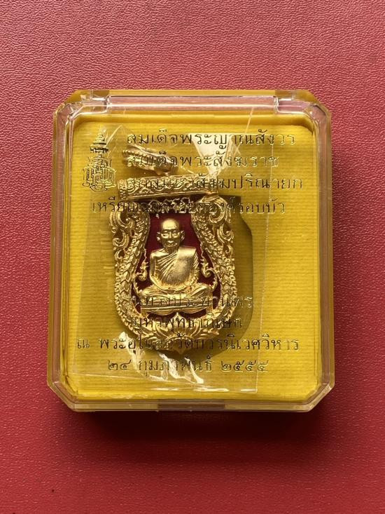 เคาะเดียวแดง พระสังฆราช รุ่น ทรงประทานพร เลข444 เนื้อ บรอนชุบเงินโบราณ |