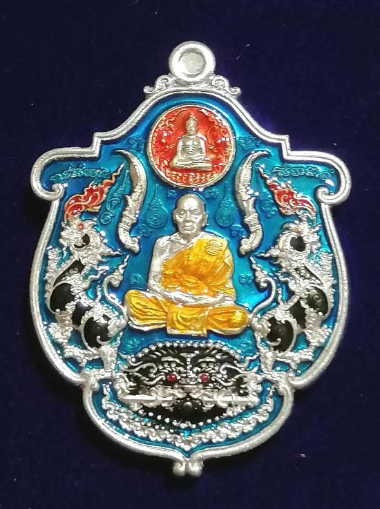 เหรียญพิมพ์นั่งพาน รุ่น 1 หลวงพ่อสวัสดิ์ ปุณณสีโล เนื้อเงินลงยาสีฟ้า หมายเลข 6 วัดใจเคาะแรก!!! |