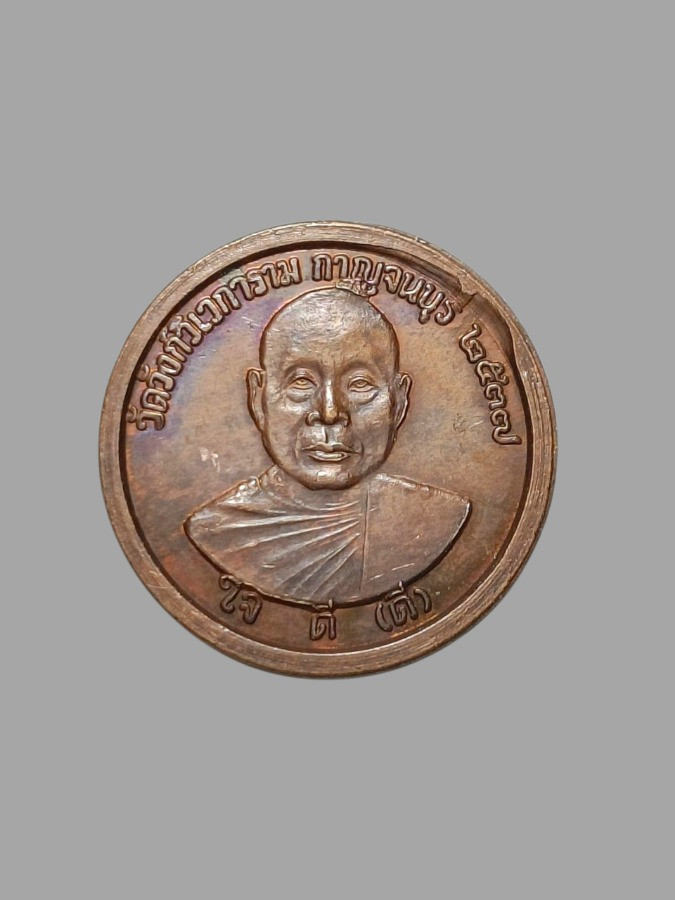 เหรียญหลวงพ่ออุตตมะ วัดวังวิเวกการาม จังหวัดกาญจนบุรี รุ่น ใจ ดี ดี หลังธรรมจักร หายาก |