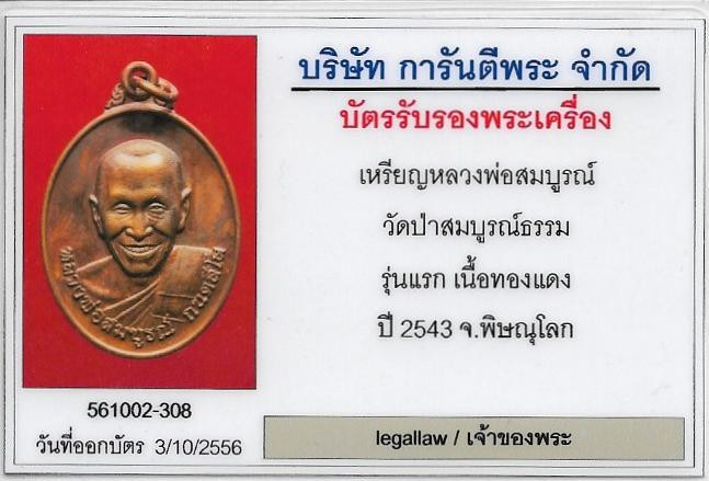 สุดยอดพระประสบการณ์จากเมืองสองแคว หลวงพ่อสมบูรณ์รุ่นแรก+บัตรรับรองพระแท้*271 |