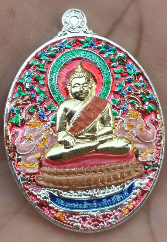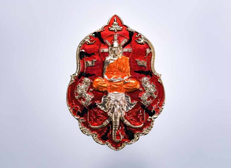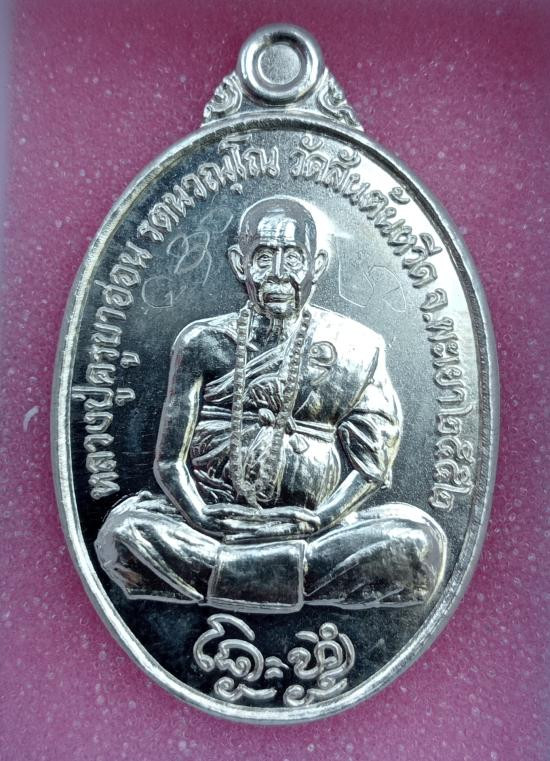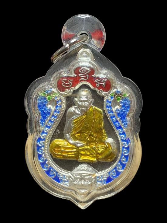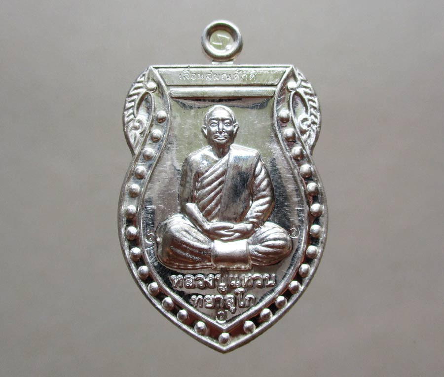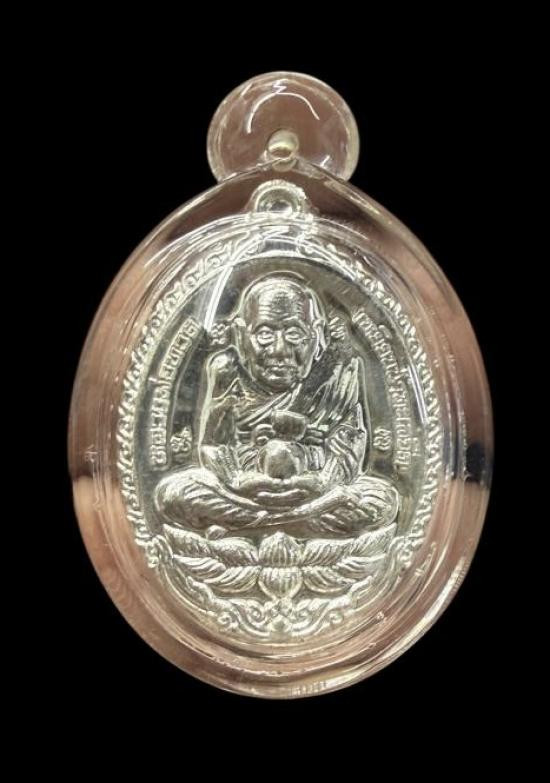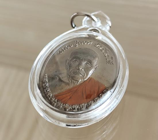 เหรียญเม็ดแตง หลวงพ่อรวย รวยชนะจน เนื้อเงินลงยา ปี62 หมายเลข679 |