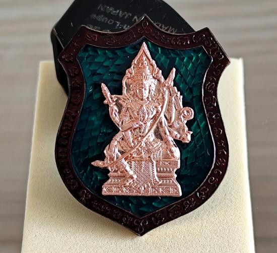 เหรียญ <เทพซิ่ง> เทพเจ้าแห่งความเมตตา เนื้อทองทิพย์ ลงยาม่วงขอบแดง+ลงยาจีวร หมายเลข 48 หลวงพ่อพัฒน์ วัดห้วยด้วน จ.นครสวรร |