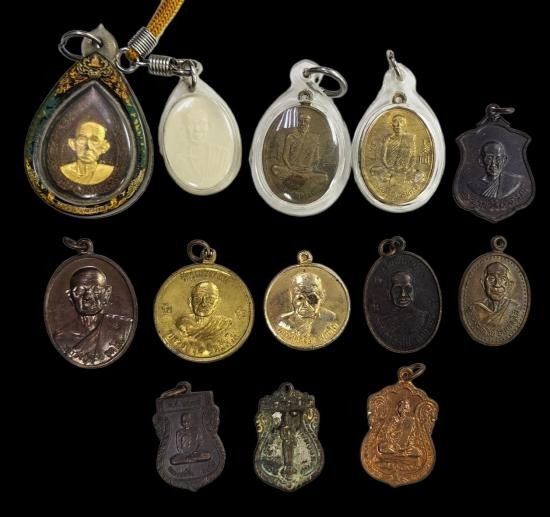 พระพรหม พระอาจารย์เชาว์นันท์ สำนักสงฆ์ห้วยยาว (รับพระ5เหรียญ) พร้อมเลี่ยม ทองทิพย์ยาแดง4เหรียญ เลข84,12,71,18 อัลปาก้ายาแดง เลข35 |