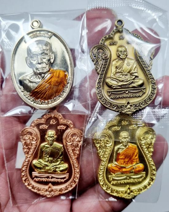 เลื่อนสมณศักดิ์ หลวงพ่อพัฒน์ คละเนื้อ 4เหรียญ พร้อมกล่อง