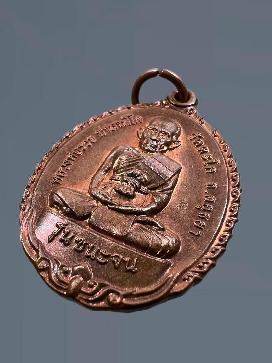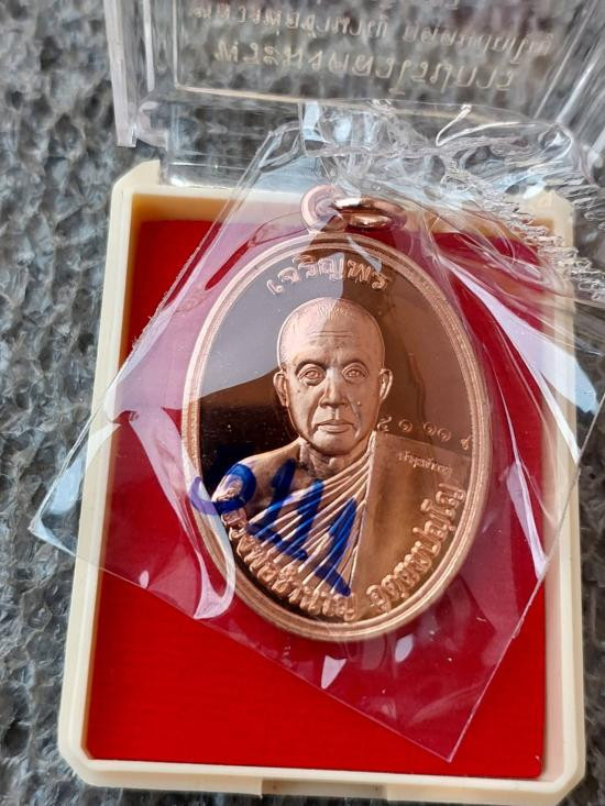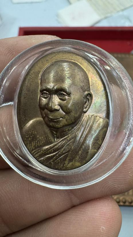 เหรียญนั่งพาน หลวงพ่อพุธ ฐานิโย รุ่นทูลเกล้า พ.ศ.2537 เนื้อท องแดง ตอกโค๊ต พร้อมกล่อง