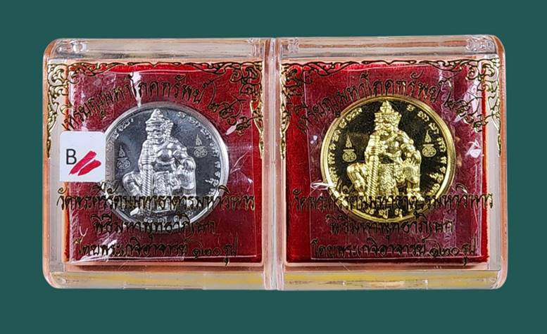 เหรียญท้าวเวชสุวรรณ ราชันทรัพย์ เสก 11 วาระ เนื้อเงินลงยาแดง >>หมายเลข 144 ชุดเลขมงคล<< หลวงปู่มหาศิลา สิริจันโท จ.กาฬสินธุ์