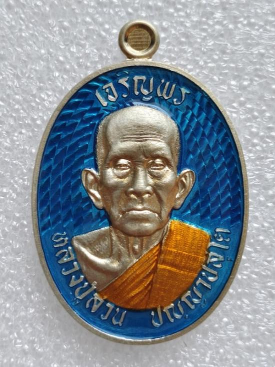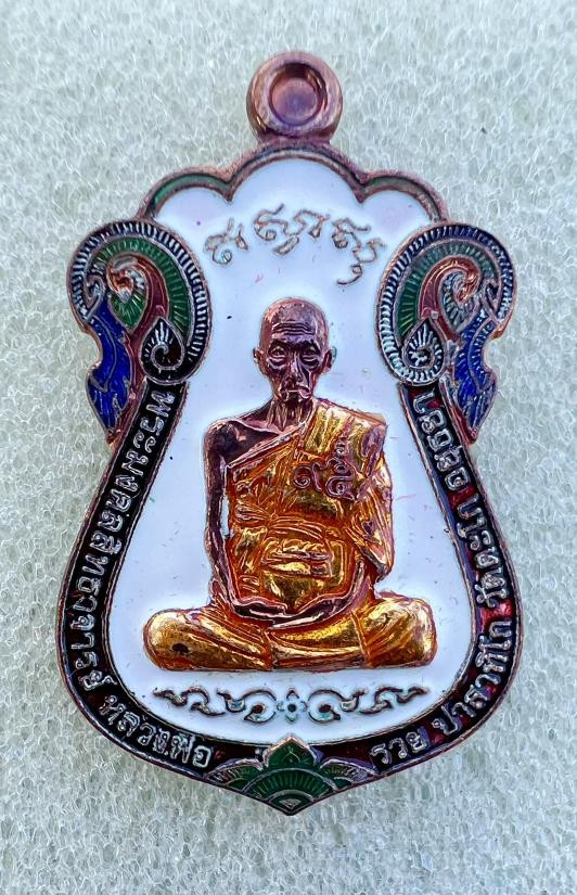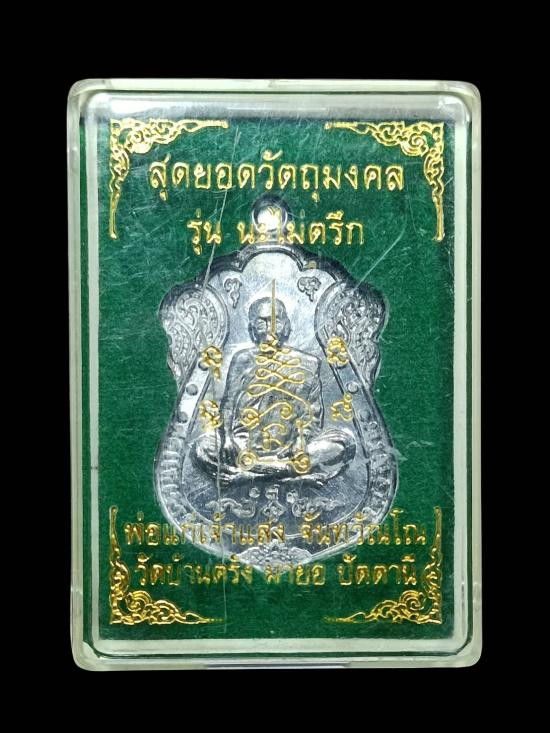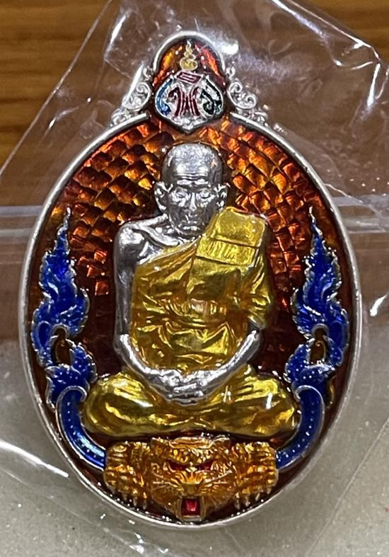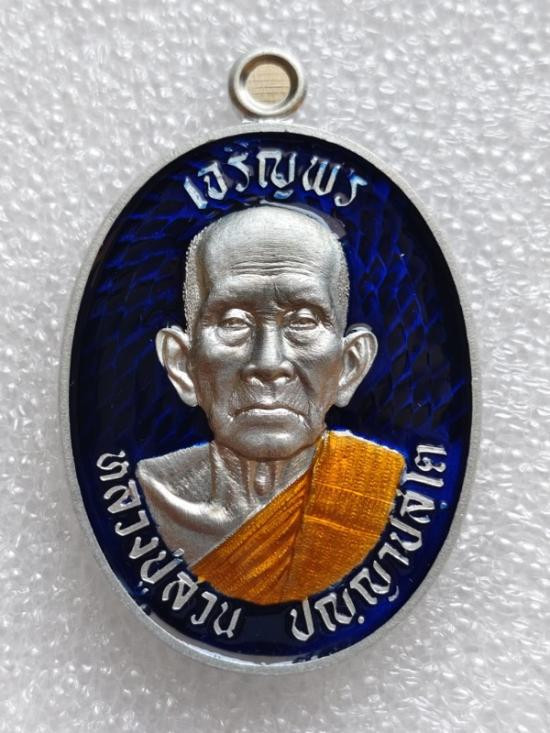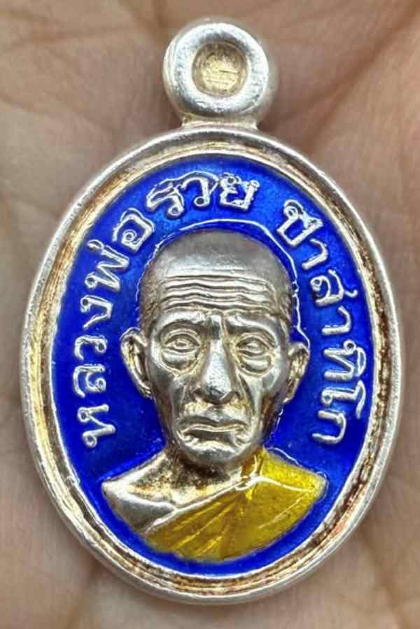 หลวงพ่อรวย วัดตะโก จ.อยุธยา เม็ดแตงรุ่นแรก ปี 2553 เนื้อเงินลงยาสีน้ำเงิน พร้อมกล่องเดิม |