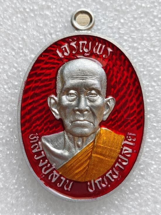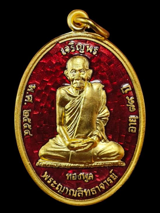 เหรียญเจริญพรบนหลวงพ่อทองพูล สิริกาโม รุ่นสถาบันรักษาดินแดนแห่งประเทศไทย เนื้อกะไหล่ทองลงยาแดงสวยมากกล่องเดิมวัดใจ 100 แดงครับ |