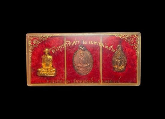 เลื่อนสมณศักดิ์ หลวงพ่อพัฒน์ คละเนื้อ 4เหรียญ พร้อมกล่อง |