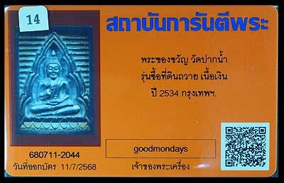 พระของขวัญ เนื้อเงิน รุ่นซื้อที่ดิน ปี2534 วัดปากน้ำ กรุงเทพ |