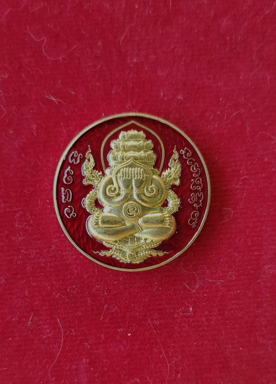 เหรียญพระพิฆเนศ หลังยันต์ตรีนิสิงเห ปี2537 โบสถ์พราหมณ์ เสาชิงช้า กทม |